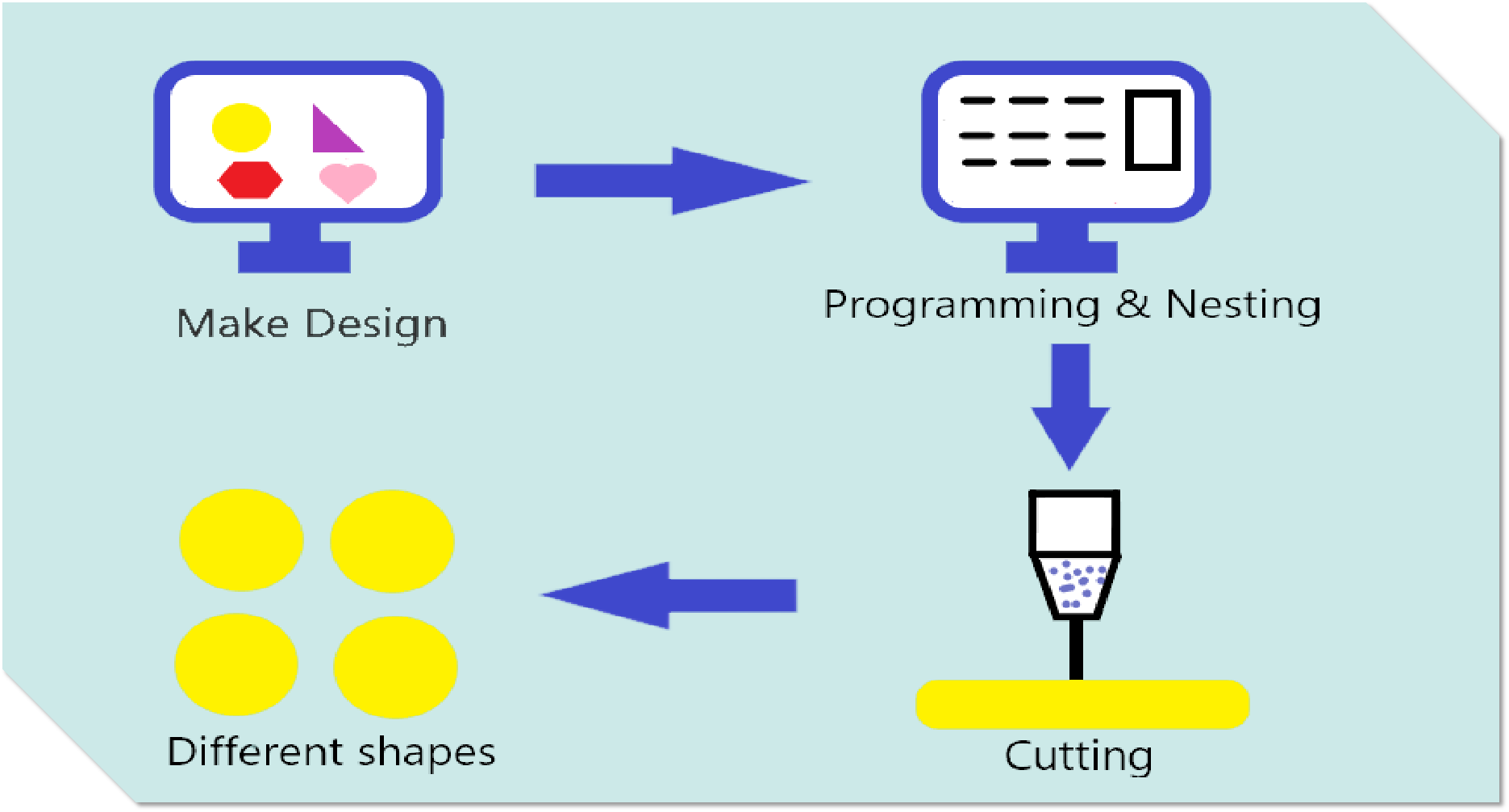 Corte No processo de corte com água, os alimentos estão apenas em contato com água pura, o que evita o risco de contaminação dos alimentos causada por ferramentas de corte tradicionais.,Não produzirá calor e não adicionará nenhum produto químico.A higiene é inigualável no processo de corte.normalmente o tamanho do fluxo é a largura de um fio de cabelo humano a velocidades de até 900m por segundo.Esta pequena largura de corte é tão fina que a comida não será comprimida ou lavada. Não precisa de molde,